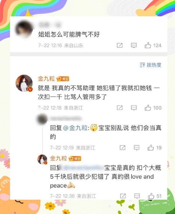 金靖因在微博上发表关于助理犯错扣薪的言论而声誉受损,被网友指责为无良资本家,对员工进行压榨。尽管助理站出来为她辩解,但金靖的口碑并未因此改善,反而引发更多质疑。她频繁出现在公众视野,试图通过塑造“与助理关系融洽”的形象挽回口碑。