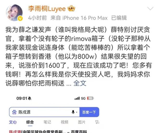 原本李雨桐昨天爆料了一整天,都没什么人关注她和薛之谦的旧怨,因为她十年前就闹过一次了,最终是她输了。