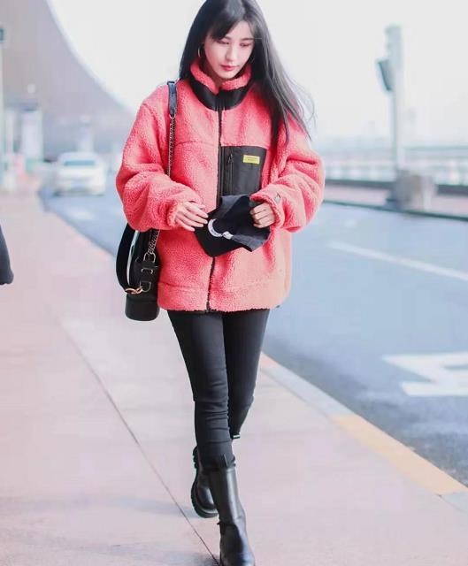 Lily第一眼看到李菲儿身上穿的这件红色羊羔毛外套就爱了~不得不说她的这一身穿搭很美!颜值+时髦度都很在线,胸前笑脸贴布设计,为简约的款式增添了几分个性,宽松的版型,很不挑身材呢!搭配黑色紧身裤和短靴,秒变时尚潮流girl,肩上挎着今年流行的包包,出门逛街、约会妥妥的,2020年元旦、过新年都可以这样穿,喜欢的小仙女们大可以借鉴一下。