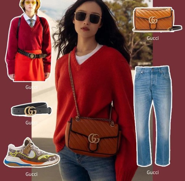 倪妮的这一套“新年红”穿搭可是最基础经典的了,红色毛衣+牛仔裤,简简单单又带点随性,但却能展现出一种高级的美感。Lily想这也只有倪妮才能够将其演绎出来了,在冬天,觉得单穿一件毛衣会冷,那么可以借鉴下倪妮的这种穿法,毛衣里面再配一件白色打底衫,层次感的叠穿让整个造型富有美感,V领设计的毛衣,穿上很显瘦,脚下选一双老爹鞋搭配,轻松打造出青春活力范。