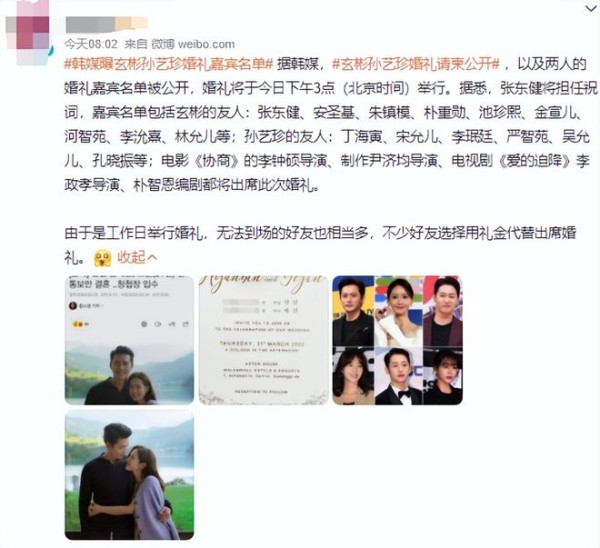 玄彬孙艺珍婚礼将至,受邀嘉宾名单疑似曝光,张东健朴智恩或出席