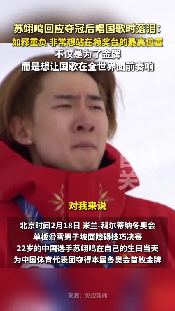 苏翊鸣在22岁生日当天以三跳高分夺冠,第三跳结束后情绪崩溃落泪,将金牌作为“送给自己的礼物”。这种个人生命节点与职业荣耀的重合,天然具备情感冲击力,网友形容为“背负重压下的极致释放”。
