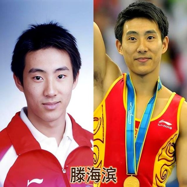 滕海滨,体操界的金童,雅典奥运拿了鞍马金牌,北京奥运还拿了男团金牌,小时候练体操,柔韧性好被教练叫北京小弹簧,雅典夺冠后抱着金牌在后台啃面包,那照片我现在手机里还存着呢,太逗了,现在退役当教练,搞青训带小孩,上次看节目他还能劈一字马,柔韧性跟年轻时没差,AI画的是稚嫩小将,现实里就是深耕体操的名帅。