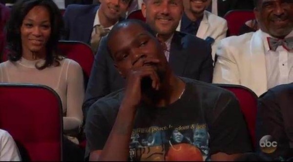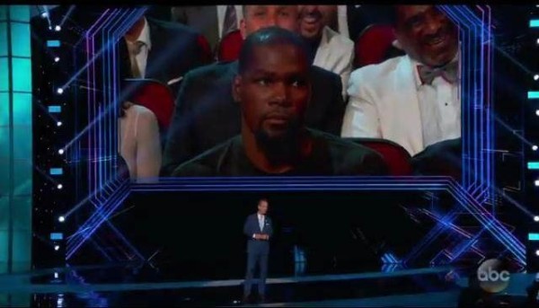 ESPY自1993年开始,每年举办一次,因为评选权威,涉及面广,影响力大,所以ESPY也被称为是体育界的奥斯卡,本届ESPY颁奖典礼主持是美国橄榄球明星佩顿-曼宁,佩顿-曼宁是美国体育界最重量级的明星之一,他5次获得联盟MVP,2次获得超级碗冠军,1次超级碗MVP,去年三月份宣布退役,本届颁奖典礼中,佩顿-曼宁在提到美国体操队时,还不忘调侃了杜兰特。
