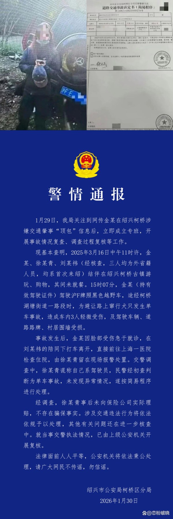 官方通报中的描述为“3人轻微受伤”,娱记百晓生质疑:3人轻微伤,留下助理,另两人从绍兴至上海就医。中午11点至下午3点未实际就餐?先是申请了保险理赔,后又自动撤销理赔改为自费给付?