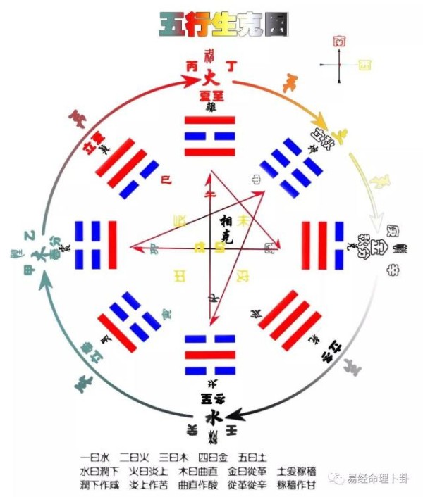 八卦与五行:坎为水,离为火,乾、兑为金,震、巽为木,坤、艮为土。