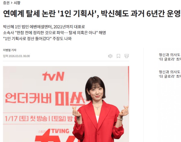 近日,韩国媒体爆料称,朴信惠于2015年至2021年间运营一家名为“Ebenezer Entertainment”的个人工作室,注册地址为其住宅,涉嫌通过该空壳公司结算演艺收入以逃避税款。报道指出,其手法与此前车银优逃税案高度相似。
