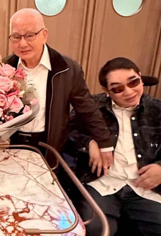 黎姿为弟弟庆生晒全家合照,黎婴靠搀扶罕见站立,身材仍高大魁梧