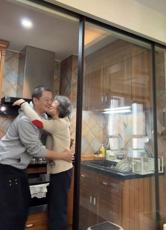 李亚鹏轻声喊住母亲,笑着说要送她一个元宵节礼物,不等母亲反应过来,就主动走上前张开双臂。李母听到儿子的话,没有丝毫不好意思,立马放下手中的碗筷,擦干手上的水渍,笑着投入儿子的怀抱。镜头下,李母脸上笑容满溢,眼角的皱纹都透着笑意,开心得像个得到糖果的小孩,那份被儿女疼爱的幸福,无需过多言语,全都写在脸上。