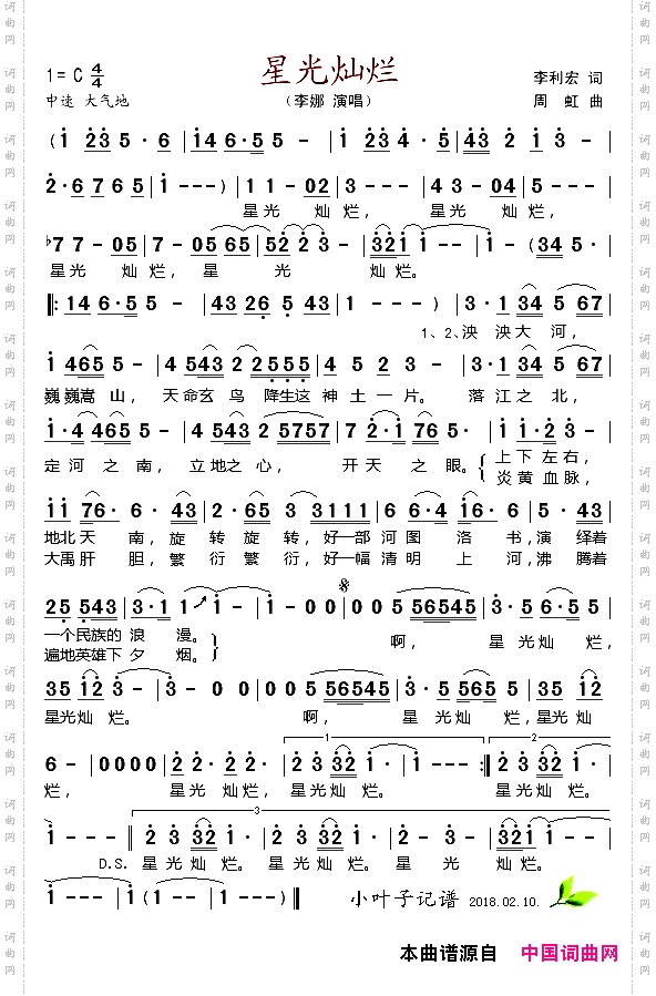 《星光灿烂》李利宏作词 周虹作曲 李娜演唱(奏) ,原创歌曲简谱,通俗歌曲,国语歌曲谱