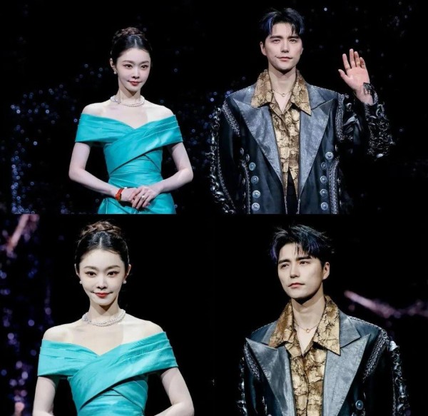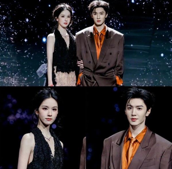 卢昱晓、陈芋汐同台, 一个演员一个跳水冠军,风格迥异却意外和谐;好在卢昱晓的红毯妆造这次稳住了。