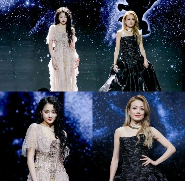 关晓彤、容祖儿分列两侧, 黑长直与齐肩短发各自美丽,不争也不抢。