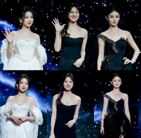 李乃文、佟丽娅、王玉雯依次走过地毯, 沉稳、风情、灵动三种气场隔空过招,谁也不输谁。