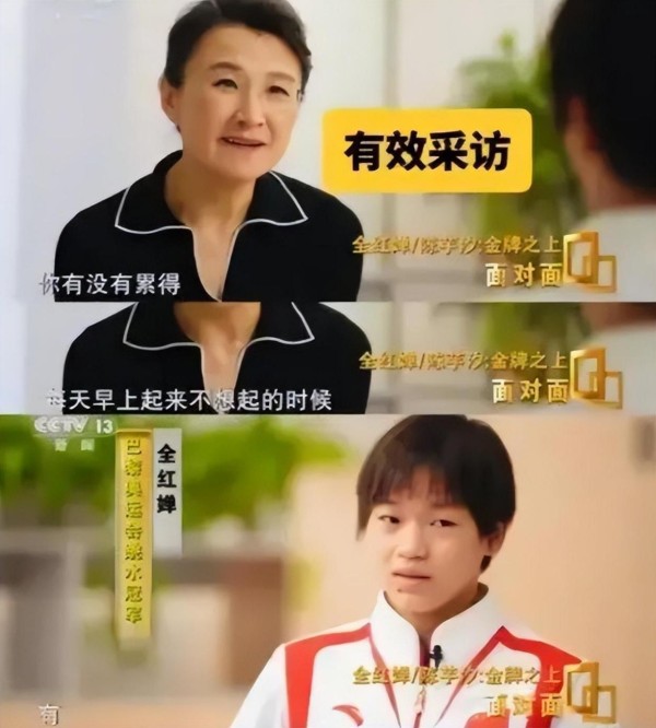 央视主持人董倩采访全红婵,全程极舒适,网友喊话朱记者好好学学