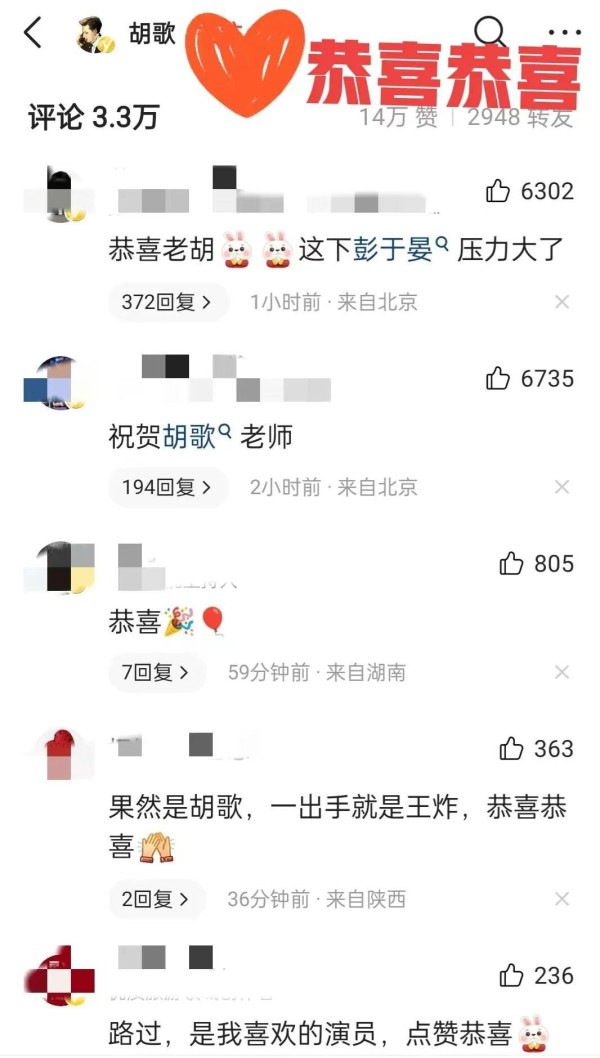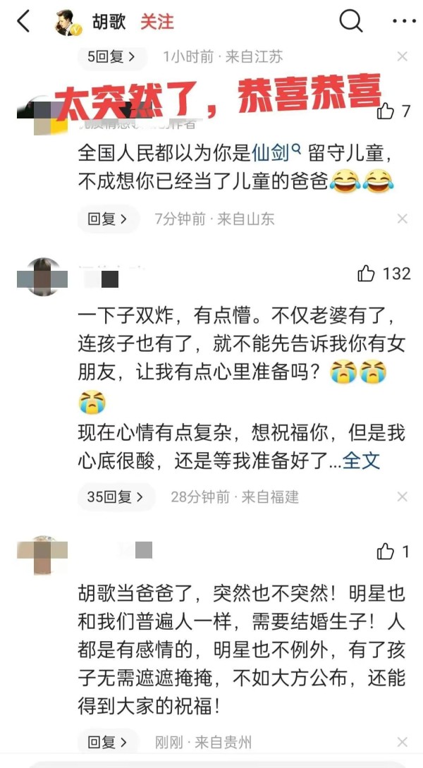 说真的,刚刷到这一消息的时候,还以为看错了,特意点进去一看,的确是胡歌。评论区下面,很多网友送上祝福。