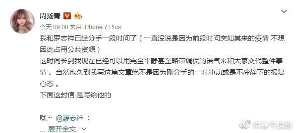 备受关注的事件女主人周扬青回应了她和罗志祥分手的原因,让我总结一下要点。
