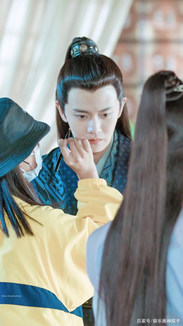 化妆师正在给陆大人化妆,剧中的陆大人脸小却肉嘟嘟的,花絮中的脸型似乎更为瘦削,这状态可还行?