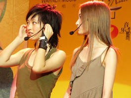 美眉组合在发布会上2003年8月1日,华纳唱片联合m&m’s牛奶巧克力、湖南卫视《音乐不断》举行的大型选秀活动“艺星制造Ⅱ2003艺星制造偶像选拔赛”在阳光俱乐部举行了新闻发布会。