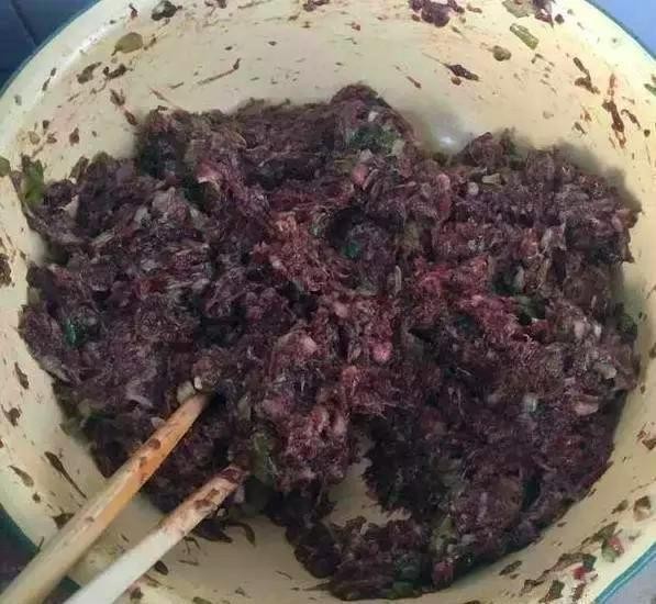 准备适量的驴肉,用刀在家里慢慢剁碎,放入盆中。这里一定要注意手打驴肉馅,把葱切碎,拌入肉馅。依次放入生抽、料酒、五香粉、黑胡椒粉、蔬汁鲜、香油。沿顺时针方向充分搅拌。在搅拌期间,加入适量凉白开,使肉馅变得粘稠。