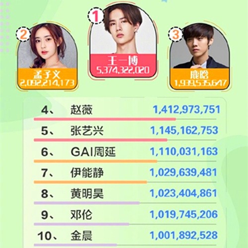 艺人网络影响力榜:鹿晗凭借综艺上榜,王一博第四,肖战夺冠