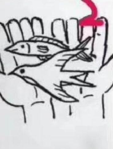 接下来给大家看一下第二张图片,一个人的手掌里面拿着一条鱼,一只鸟,看了半天都不知道这个是什么意思。