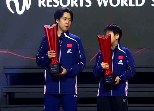 孙颖莎、王楚钦夺得男女冠军后,分别发文金杯映照来时路