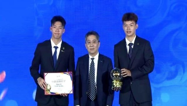 值得注意的是组委会设立了一个特别奖,颁给在U23亚洲杯上表现突出的中国U23国家男子足球队,队长刘浩帆和王钰栋代表球队上台领奖。