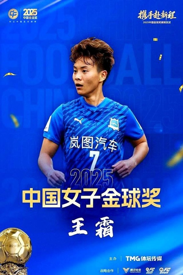 第三,王霜第五次夺得中国女子金球,说明她在女足领域长期保持的影响力与竞技水平依旧处于顶尖行列。
