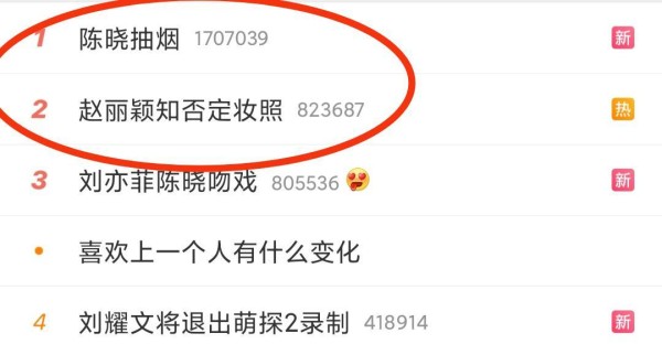 陈晓凭借话题“陈晓抽烟”登顶榜单第一,赵丽颖凭借话题“赵丽颖知否定妆照”紧随其后位居第二。
