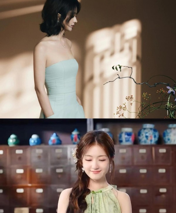 说句实在的,新中式造型最讲究个“整体感”。背景的雕花、裙子的纹样,甚至桌上的茶具,都是成套的风格语言。这时候发型就得像根线,把这些元素串起来。李兰迪那组造型,发髻的高度、碎发的走向,都跟着旗袍的盘扣位置、屏风的木纹走,看着舒服自然。赵丽颖这头发呢,像是单独找了个造型师设计的,没跟服装、场景对过版。你想啊,背景是沉稳的深棕红,裙子是雅致的墨绿,头发倒弄成了蓬松的浅棕卷,颜色亮度都不搭,更别说风格了。