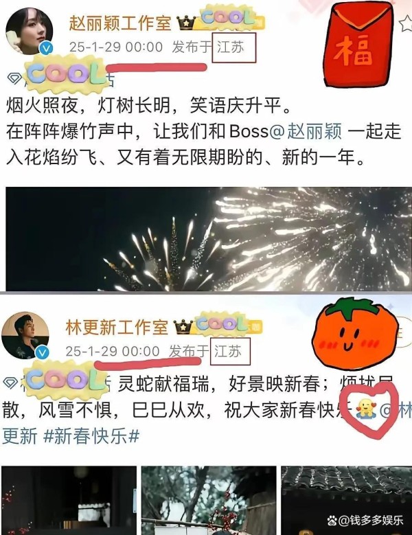 要说这两位"戏精"的恋爱方式,还真是别出心裁。他们没有选择高调官宣,而是玩起了"躲猫猫"。两家工作室默契十足地在同一时间发布新年祝福,就像是在玩"你懂的"的游戏。这种"不说破但大家都懂"的方式,不禁让人感叹:现代人谈恋爱都这么讲究"艺术"了吗?