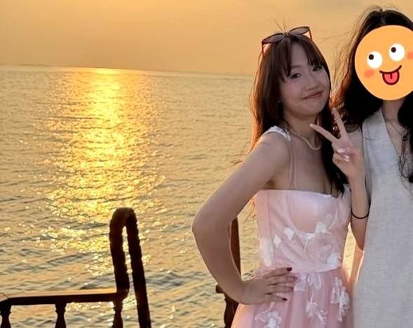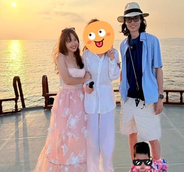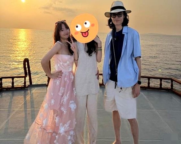 有网友在社交平台分享了和这对夫妻的合影,说是在马尔代夫的酒店无意中碰见,当时麦琳穿着一条粉色抹胸长裙,戴着一串珍珠项链,头发一侧还别着墨镜,看起来格外有活力。