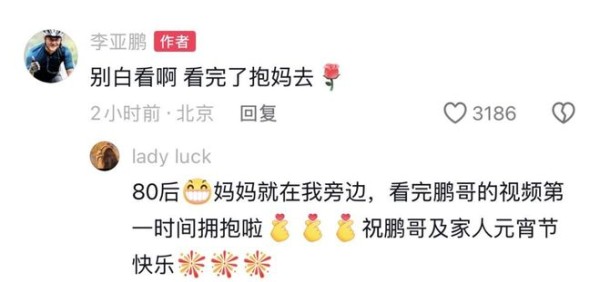 参考资料:人民网 李亚鹏分享陪母亲过元宵节日常