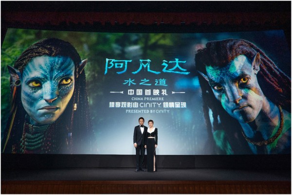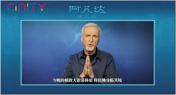 卡梅隆导演专为此次首映式发来视频致辞,他表示:“与第一部《阿凡达》一样,《阿凡达:水之道》将继续拓展大银幕体验的极限,运用顶尖技术,呈现动人故事。今晚我们都将成为萨利家族(影片的主角家族)新冒险的一份子,通过CINITY的3D技术、高动态范围成像、高帧率和更高的分辨率呈现,今晚的极致大银幕体验将仿佛身临其境。”