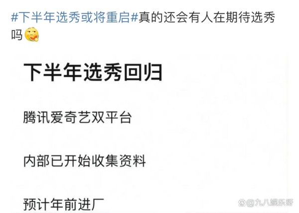 选秀节目有望回归?女团呼声更高,路人:经不起塌房了