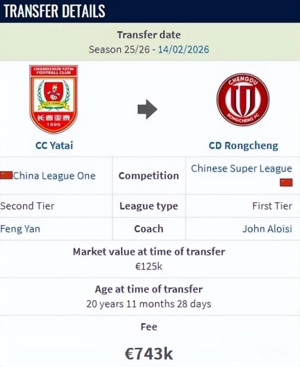 在引进贺一然方面,成都蓉城显然比其他俱乐部更有诚意。德转显示,贺一然从长春亚泰加盟成都蓉城的转会费约600万人民币。相对来说,山东泰山俱乐部不会舍得砸这个数字引进贺一然,毕竟自家青训出品的球员正在排队等候。贺一然现年21岁,在U23亚洲杯出场4次,发挥稳定,随队获得亚军。俱乐部层面,贺一然共为亚泰出场55次,贡献2次助攻。