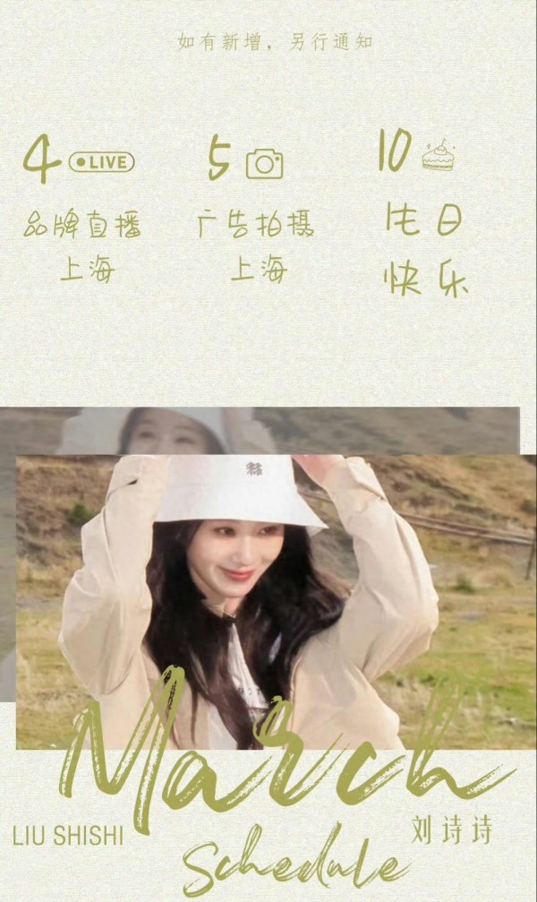 首先来看一下刘诗诗的3月4日在上海有品牌直播,3月5日在上海有广告拍摄,3月10日是她的生日。