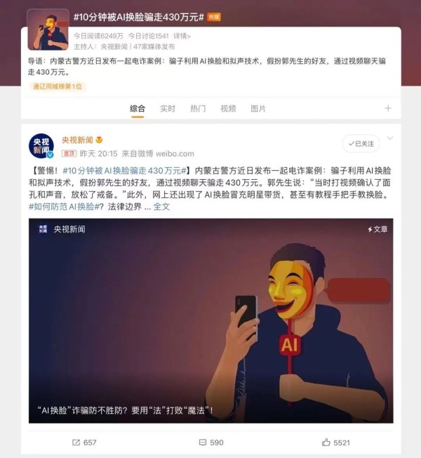 又一起“AI换脸诈骗”!安徽男子9秒被骗走245万元