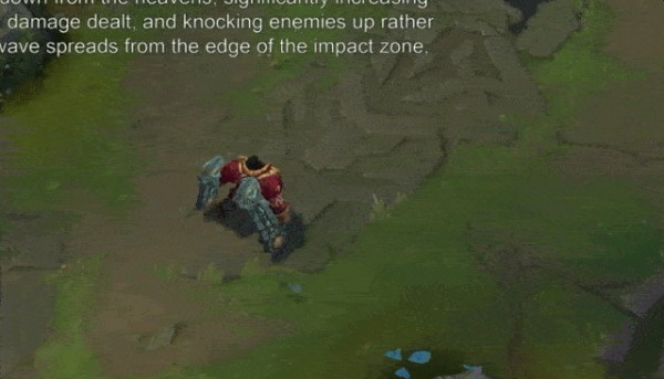 R:召唤流星砸向地面,造成伤害并眩晕敌人,每命中一名敌人就会产生一份星尘。星尘会提升该技能的范围,当他收集到75枚星尘后,下一次流星会升级为天瀑,天瀑会召唤更大的流星撞击地面,极大提升范围的同时,伤害也会更高,并且将眩晕效果升级为击飞,而撞击地面后会产生冲击波,冲击波会持续向外扩散,被波及的敌人会受到伤害和减速,星尘同样会提升撞击的范围规模。