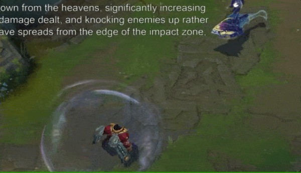 (比起旧版的大招,新版属于定向爆破的一个技能,不仅伤害更足,且带有一定的控制效果,尤其是升级后的击飞更加一大杀器,这种毁灭性极强的技能对于团战改变战局是非常关键的)