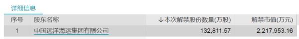 中远海控解禁详细信息