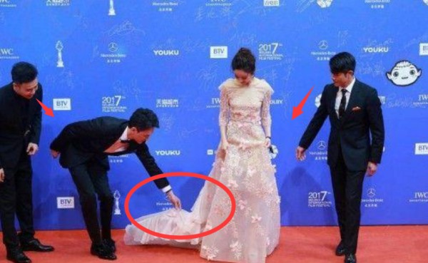 而紧跟其后的冯绍峰留意到了赵丽颖的尴尬,下腰为赵丽颖收拾裙摆。这一个小细节,在赵丽颖心里肯定是美滋滋的,大众都感动了。这次的一个下意识动作小细节,真的是赚足了。这几个男的都没有冯绍峰贴心。