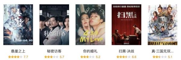 《悬崖之上》背后主要由中影股份出品发行,《你的婚礼》背后主要是光线传媒相关公司出品,中影和光线是这个五一档的最大赢家;欢喜传媒出品了《寻汉计》,阿里影业、腾讯影业、爱奇艺影业等参与出品发行了《秘密访客》,猫眼娱乐参与出品《追虎擒龙》,华谊兄弟联合出品参与了《阳光劫匪》。《秘密访客》《追虎擒龙》成绩还算中游,而表现最拉垮的《寻汉计》《阳光劫匪》势必拖累欢喜传媒、华谊兄弟的市场表现。