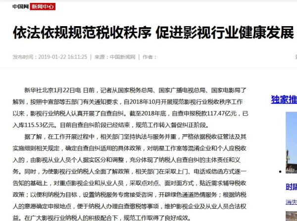 对影视上市公司而言,郑爽事件不仅在于其作为个例的负面影响,更在于“冰山之下”的未知风险——自2018年范冰冰“阴阳合同”涉税问题后,影视行业在税务部门要求下开始了自查自纠,截至2018年底,影视行业企业和个人补缴税款共计117.47亿元,其中已经入库115.53亿元。