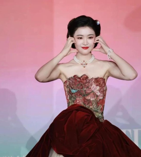 要知道之前总有人调侃她 “个子太娇小撑不起礼服”,但这次余茵算是用实力打破偏见。踩着细高跟的她背挺得笔直,面对镜头笑容也比以往舒展太多,复古妆容衬得她眉眼分明,完全没了过去的拘谨感。