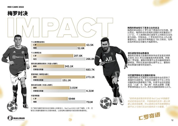 邮人体育在今年2月就曾发布《Red Card 2022:中国区足球数字营销报告》,报告对于欧洲足球俱乐部、联赛和球员在中国社交媒体上的表现进行了评分和排名。