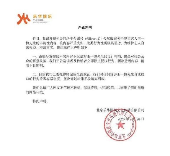 乐华娱乐声明王一博聊天记录系恶意构陷已取证追责