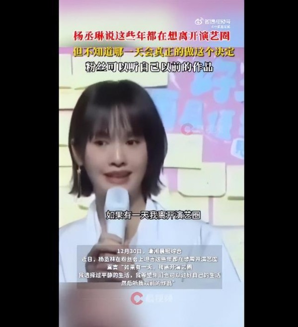 近日,杨丞琳在粉丝会上坦言这些年都在想离开演艺圈,直言“如果有一天,我离开演艺圈,我选择过平静的生活,我希望你们也可以过好自己的生活,然后听我以前的作品”。