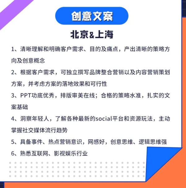 社交平台用户的年轻化迫使娱乐营销从业者也需要年轻化。年龄、性格、喜好都是衡量从业者年轻化的因素。在娱乐营销行业相关职位的招聘要求里,“social感”是一个经常被提及的词。从话题提炼、文案撰写甚至一个人的性格,都可以用social来形容。徐文洁自认是一个比较有social感的人。因为从学生时代开始,策划有趣好玩的事,对她来说是一件好玩的事。