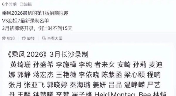 当今在网上传播最为盛行的那一版,宣称大概在3月初就要于长沙展开录制工作了,名单上面所罗列的那些人……这么讲吧,就是相当着实的,着实到致使好多网友大声呼喊“失望”,还叫嚷着“没一个具备实力的”。